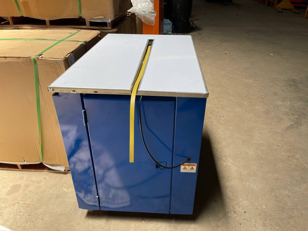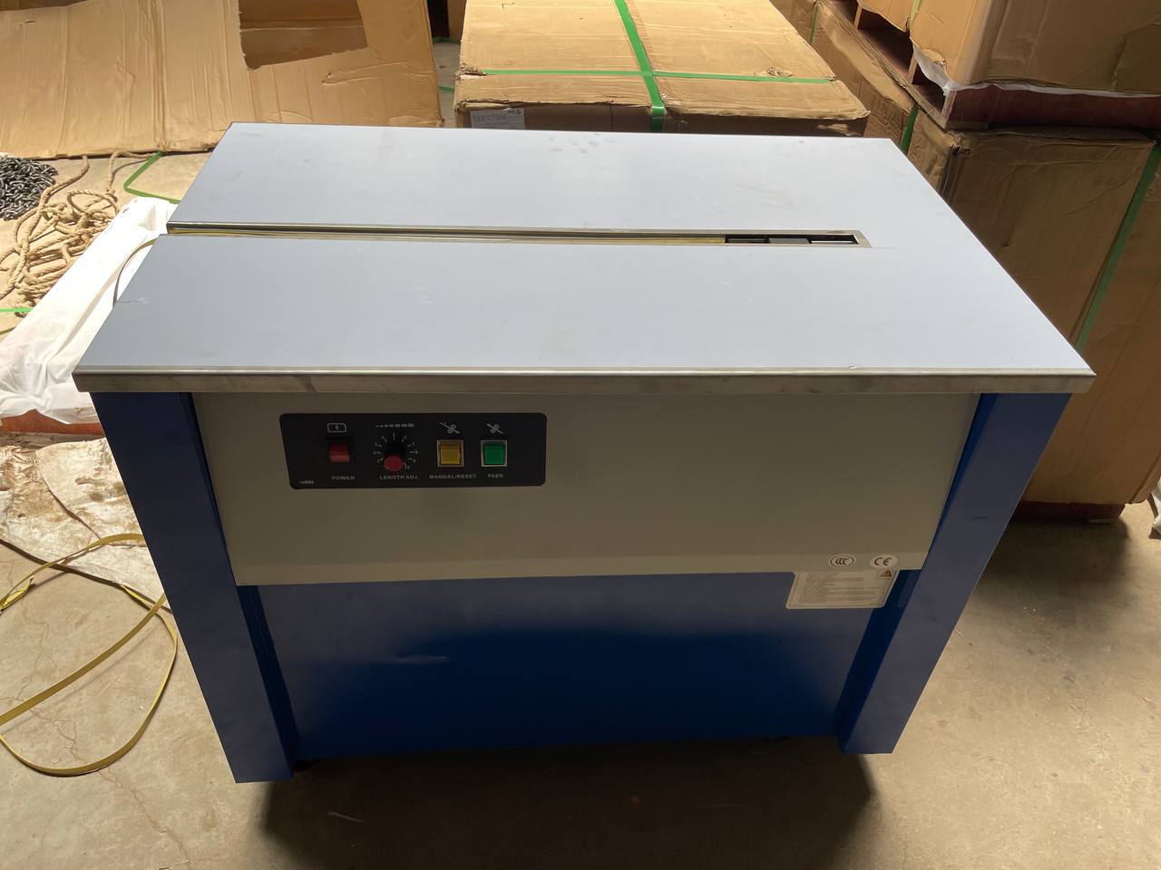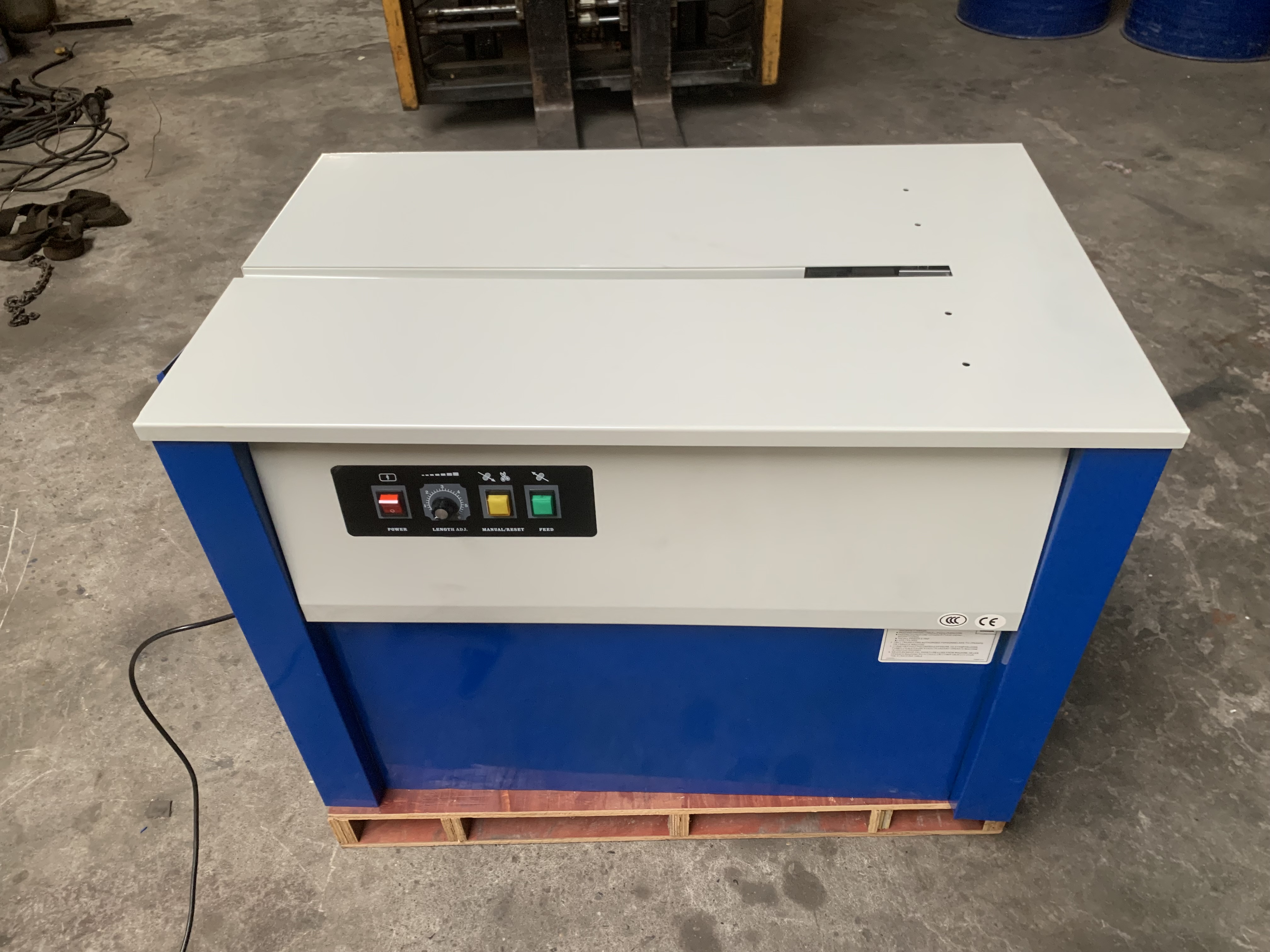 Voltage: Single phase, 200v, 60hz Power: 250w Strapping speed: 1.8(s/time) Strapping tension: 40-480(N) Strapping width: 6-16(mm) Packing size: 920*580*810mm Gross weight: 60kg