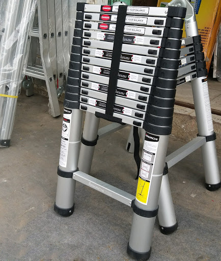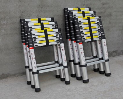 Single straight telescopic ladder Length: 2.6m Step number: 9 steps Spacing between steps: 30cm Weight: approximately 6.9kg Max Load: 150kgs